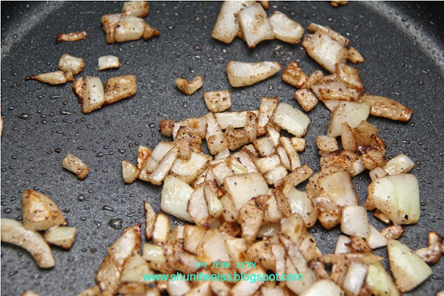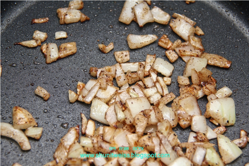 מטגנים בצל במעט שמן אורז(או שמן אחר), עד להזהבה: