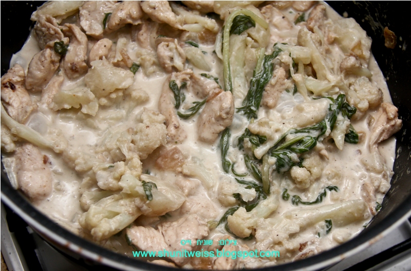 הנסיון הראשון שעשיתי איתו היה תבשיל של חזה עוף עם כרובית, תרד וחלב קוקוס.