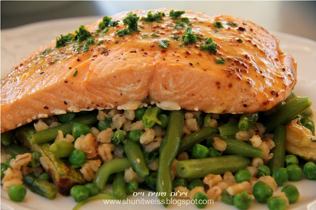 "פילה סלמון"- בתוספת ירקות ירוקים וחיטה(82 ש"ח):