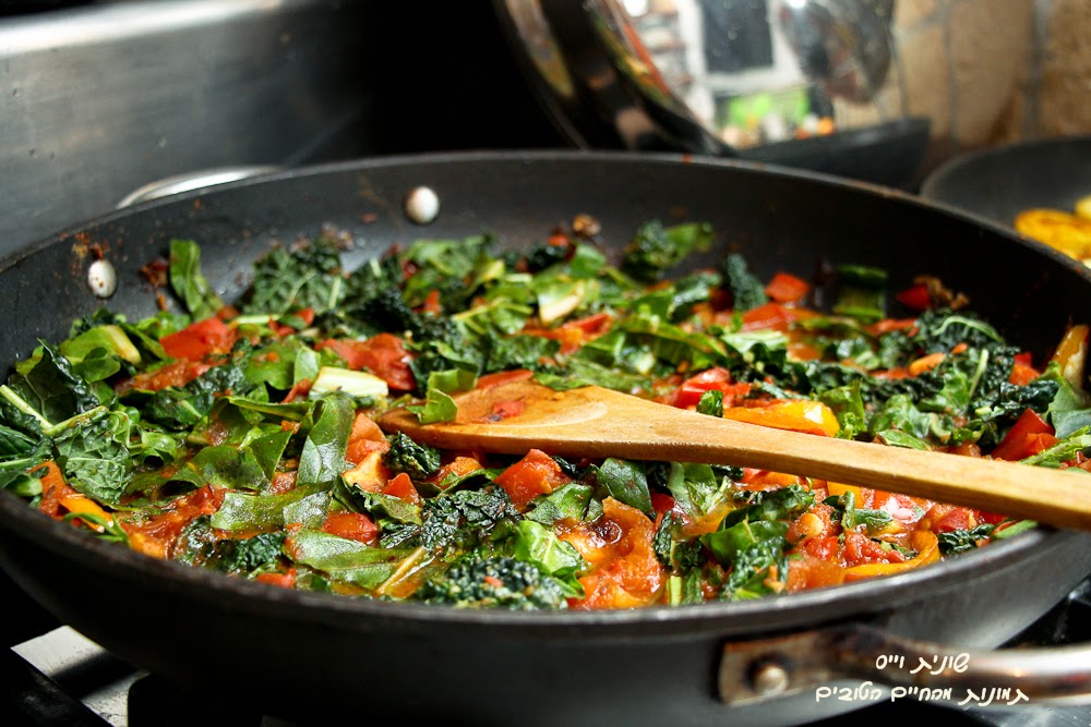 שקשוקה טבעונית עם קייל, מנגולד, עגבניות וטופו