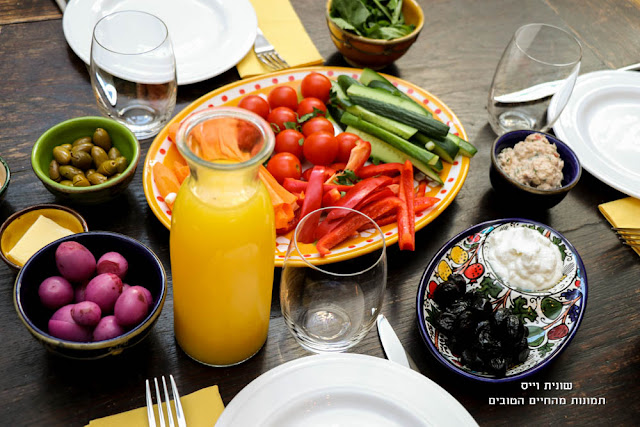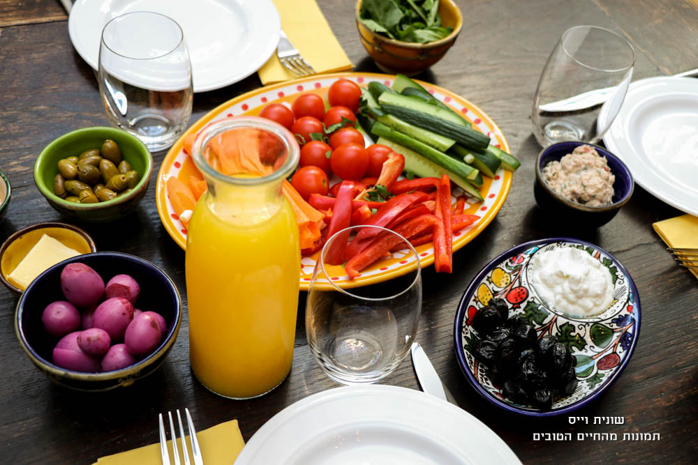 כלי האוכל והטאג'ין יובאו ממרוקו, והוסיפו לאווירה הצבעונית והשמחה שבשולחן.